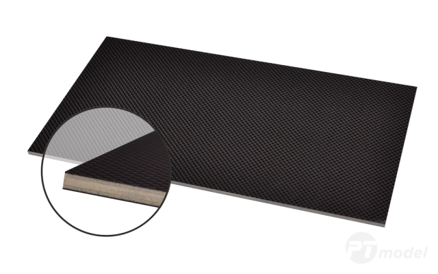 Sandwich construction Carbon + poplar 2mm + carbon, size of the sheet 290x160mm